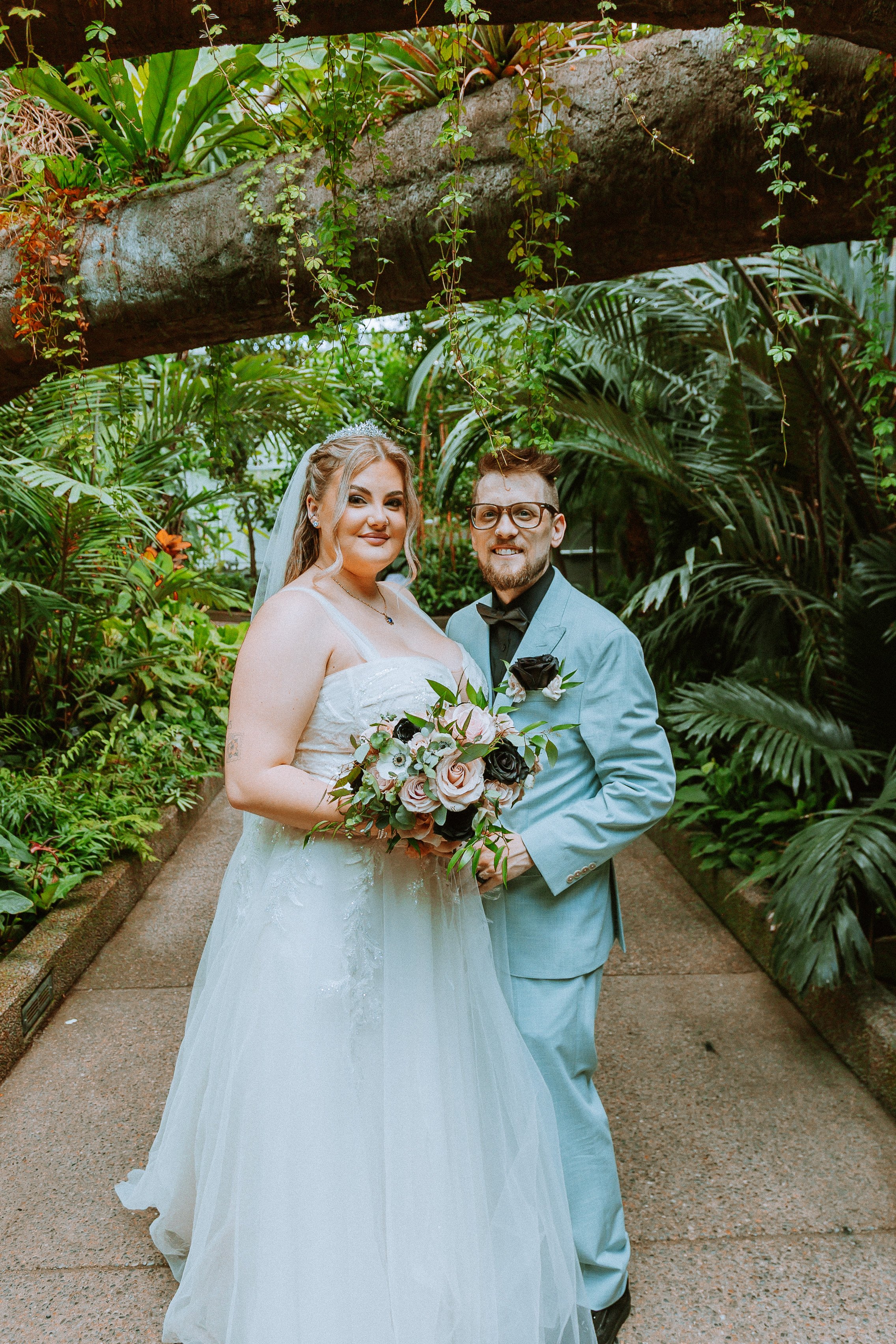 Set in the lush garden of the butterfly conservatory at the Calgary Zoo, Charlotte & Patrick’s wedding was bursting with colour and warmth.