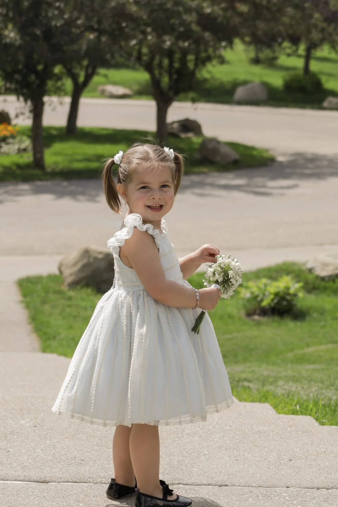Sasha & Joel kept it simple with a small bridal bouquet and tiny bouquet for their daughter for their intimate family gathering.